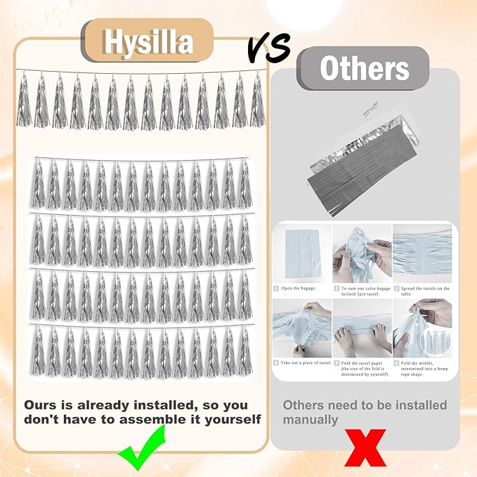 - 【Silver Party Supplies Set】: The total length of the silver birthday tassels banner is 26.2 feet, divided into 4 strips, each 6.5 feet long. Each banner contains 15 tassels, and each tassel measures 14 inches, for birthday decorations many occasions, and so on
