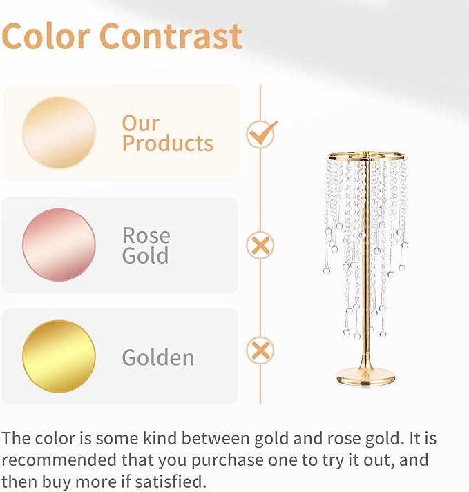 - Friendly Reminder: Flower balls are not included. The color is a beautiful blend of gold and rose gold. PACKAGE INCLUDES: 10 pack 21.7 inches/ 55cm long vases bulk for baptism centerpieces arrangements.
