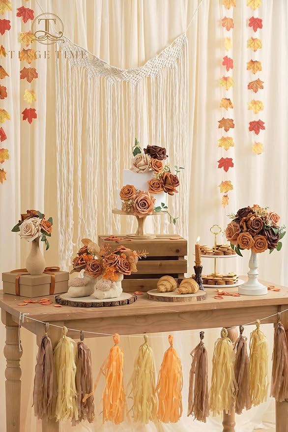 TINGE TIME Artificial Flowers Combo Box Set 16PCS Fake Rose Silk Flower with Stem for DIY Wedding Bouquets Centerpieces Baby Shower Party Home Fall Decoration (Gradient Burnt Orange)