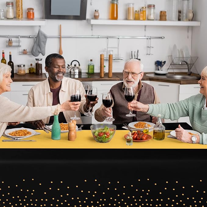 - What you will get: the package includes 6 pcs black and gold confetti dot plastic tablecloth and 6 pcs gold satin table runner, specific color as the picture shown, nice combination for you to use in daily life or important occasions enhancing the atmosphere for your event.