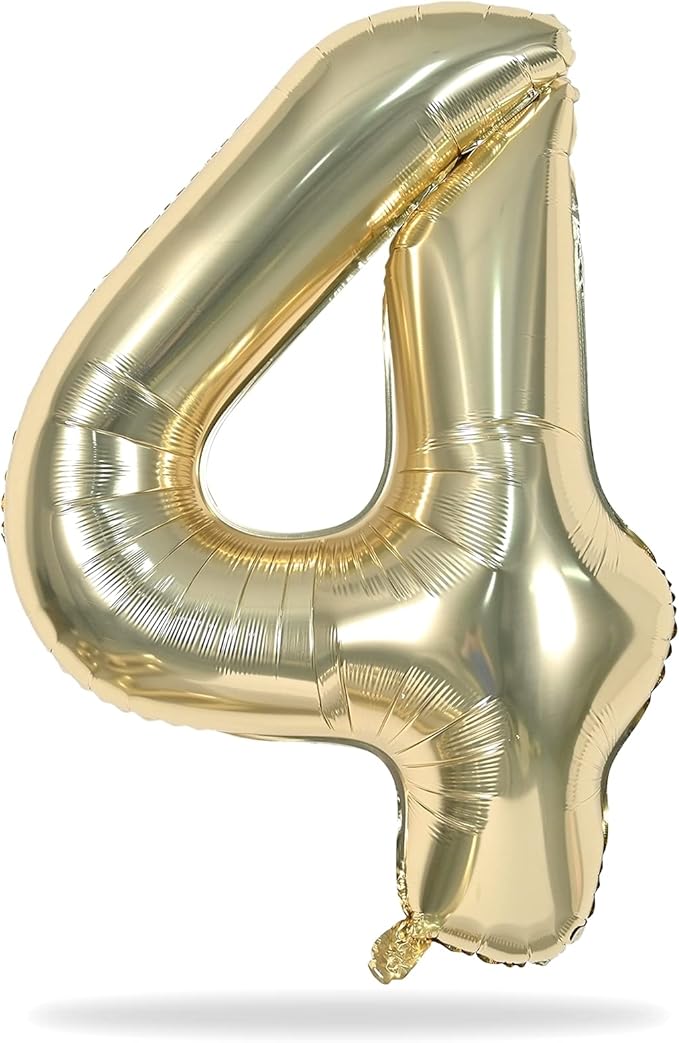 - π Champagne Gold Number 4 Balloon π - You will get 1pc 40 inch mylar foil number 4 balloon and 1pc straw. Perfect for 4th 14th 24th 40th 45th birthday or anniversary party decorations supplies.