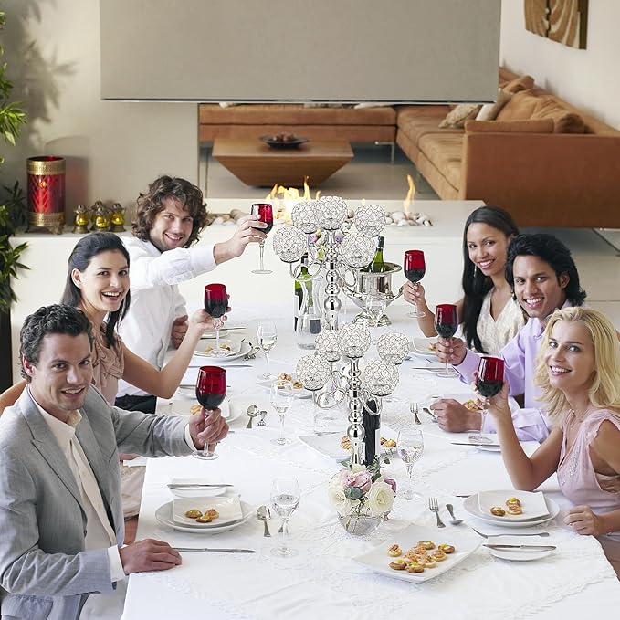 - Elegant and Luxurious Design: our 5 arm crystal candelabras come with hollow designs, crystal candle holder bowls are interspersed with the silver candlestick body, decorated with delicate heart shaped support arms for luxurious look, which can add brilliance and charm to your table and can easily grab your guests' attention