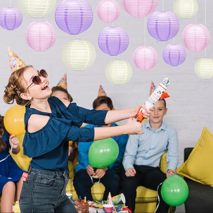 - VARIOUS COLOR - Purple pink paper lanterns decorative come with 3 bright colors: lavender, pink, white. Giving your various themed parties a wide variety colors to make excellent backdrop