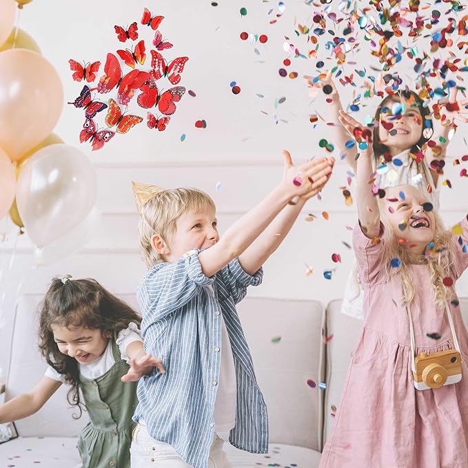Butterfly Wall Decor 24/48 PCS, 3D Butterflies Stickers for Party Decorations with Magnets (Red, 24)