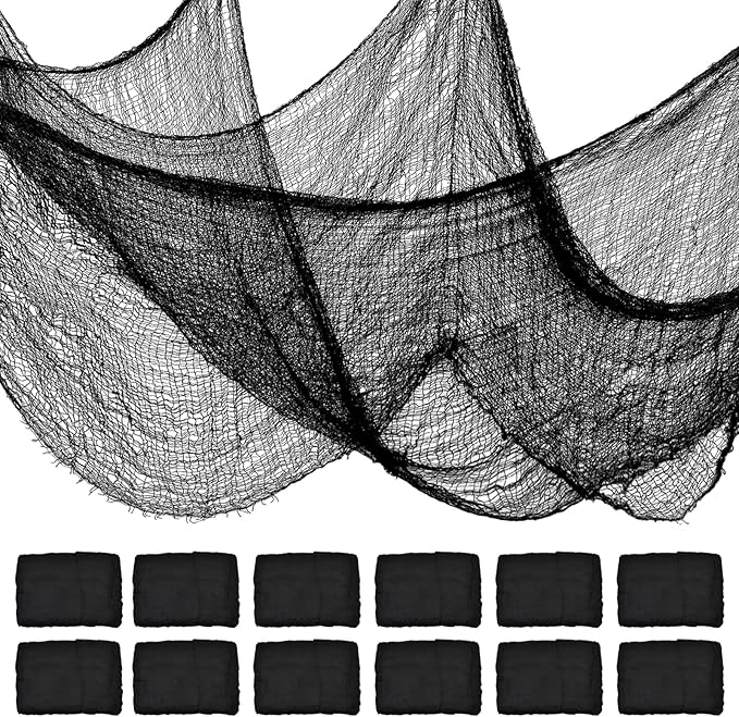 ZeeDix 12 Pack Black Halloween Creepy Cloth 30 x 75 Inch Halloween Decoration Spooky Scary Gauze Cloth Black Cheesecloth for Party Supplies Outdoor Yard Home Wall Doorways