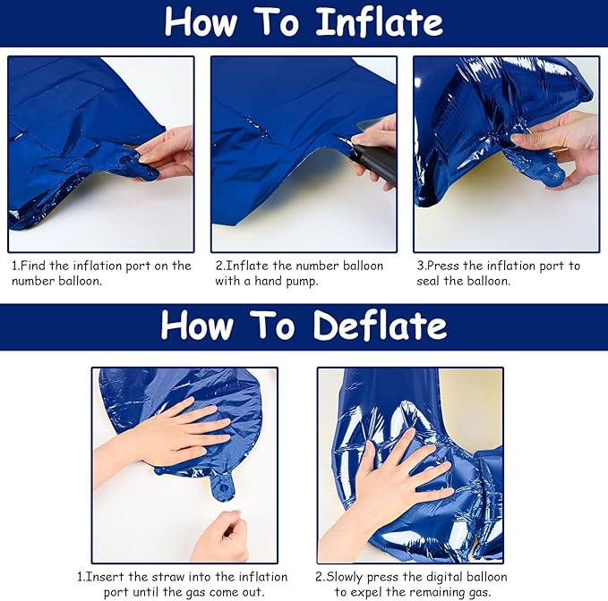 - π Repeated Use π - The navy blue number 4 balloons set contains a straw that can be used to deflate the foil balloon, simply insert the straw into the valve and press gently until the gas is completely expelled. After use, it can be folded and stored for reuse.