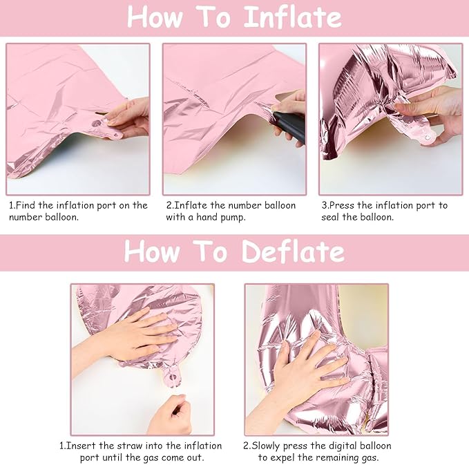 - π Repeated Use π - The pastel pink number 7 balloons set contains a straw that can be used to deflate the foil balloon, simply insert the straw into the valve and press gently until the gas is completely expelled. After use, it can be folded and stored for reuse.