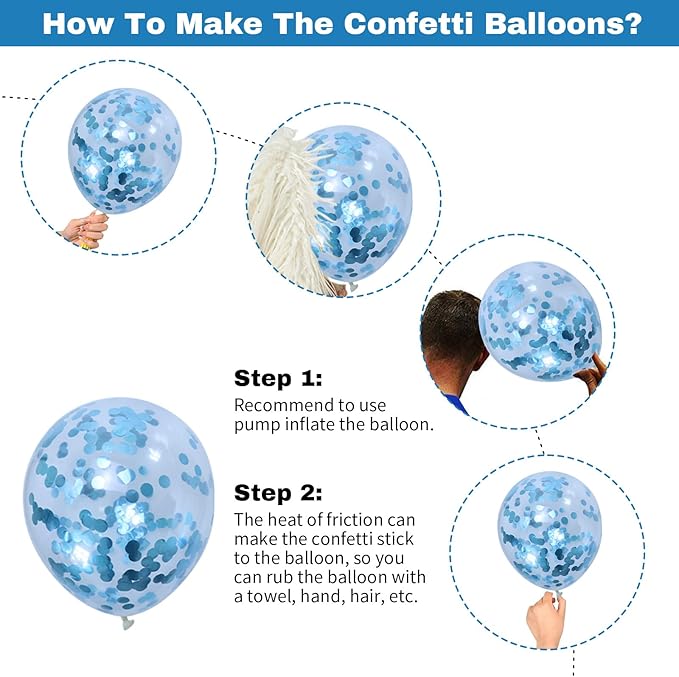 - ✨ Blue Silver Balloons: Our package includes 60pcs 12inch latex balloons (10pcs metallic blue balloons, 15pcs pearl blue balloons, 10pcs metallic silver balloons, 5pcs blue confetti balloons, 20pcs navy blue balloons) and 1pc balloon ribbon. Perfect for upscale events, birthday, or any occasion where elegance is key. Elevate your decor with these sleek and polished navy blue silver balloon that will leave a lasting impression on your guests.