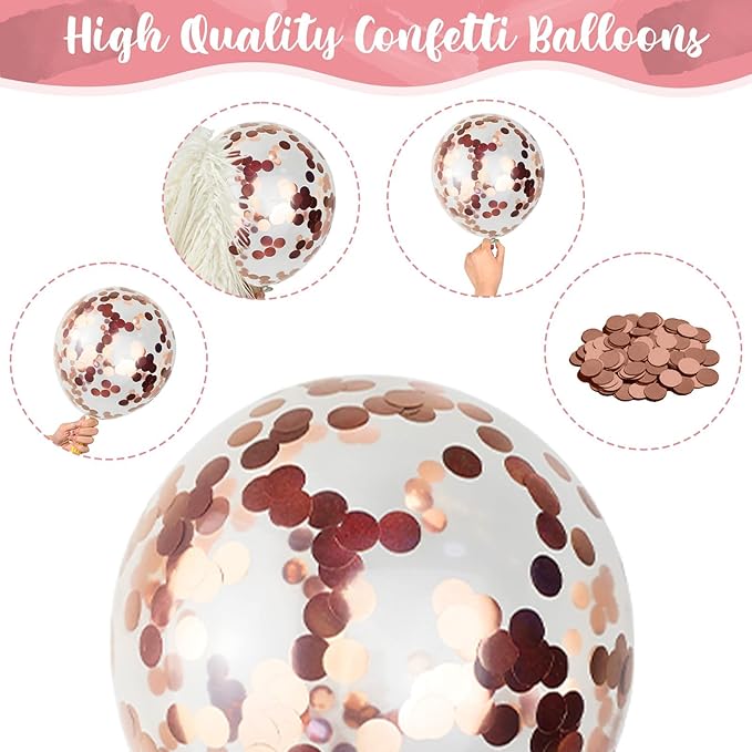 - π Easy to Use - The dusty pink rose gold balloons support both air and helium. You can blow them up with a mouth, pump or helium. After inflating, shake the confetti balloon and gently rub it with your hair or dry fabric to make the confetti stick to the side of the balloon, which can make the balloon look more beautiful. When the party is over, you can pop the balloons to let the confetti fall, adding fun to the party.