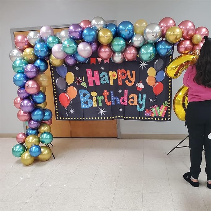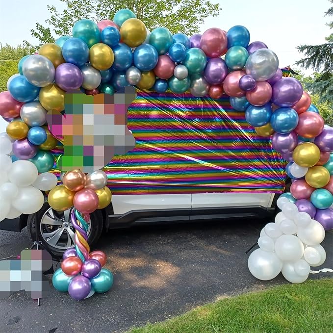 - π Premium & Durable Material - The multicolor metallic balloon kit is made of high quality 100% natural latex, thick thick and long-lasting, not easy to burst, every balloon has been rigorously tested and selected manually, safe for children. They can be filled with air or helium, suggested use with a balloon pump.