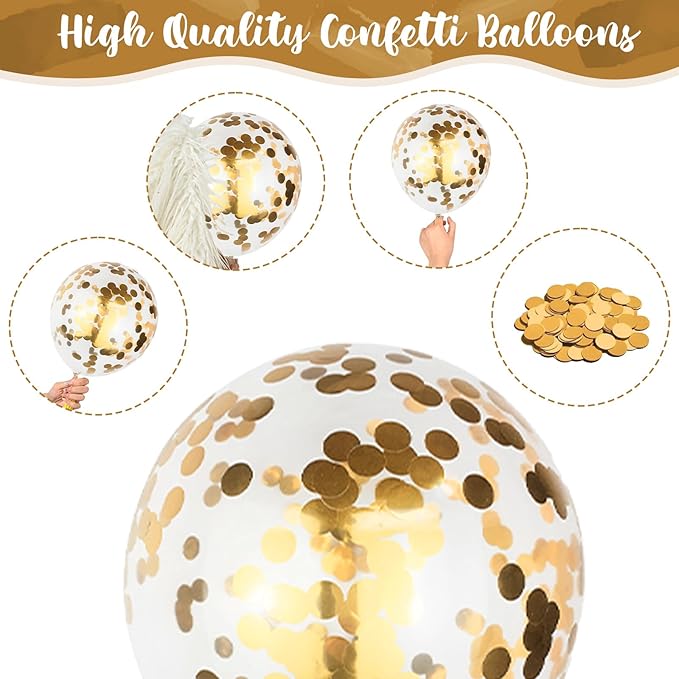 - π Easy to Use - The black and gold balloons support both air and helium. You can blow them up with a mouth, pump or helium. After inflating, shake the confetti balloon and gently rub it with your hair or dry fabric to make the confetti stick to the side of the balloon, which can make the balloon look more beautiful. When the party is over, you can pop the balloons to let the confetti fall, adding fun to the party.