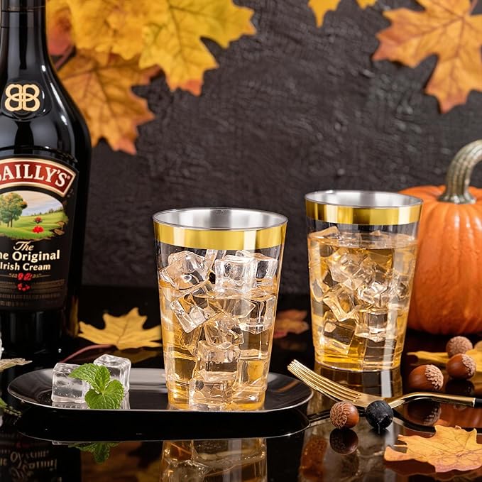 - Elegant Appearance: These gold rimmed plastic cups for parties feature a beautiful clear body with an elegant gold rim that makes them an undeniably stunning addition to any dining table, drink station or buffet. They are suitable for wine, beer, water, champagne, drinks, cocktails, sodas, drinks or any other type of drink!