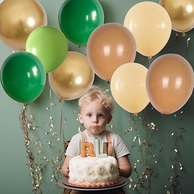 Sage Green Brown Balloons, 60PCS Green Brown Beige Jungle Safari Wild Woodland Balloon, Retro Green Metallic Gold Coffee Apricot Balloons for Boy First Birthday Baby Shower Wedding Party Decorations