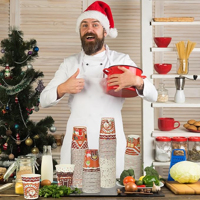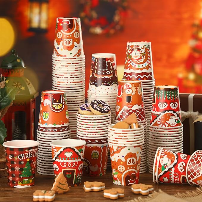- Cute and Delicate Xmas Themed Design: our paper cups 9 oz are printed with various cute and eye catching Xmas themed patterns, such as Santa Claus, snowman, elk, etc., with classic and vibrant colors, easy to catch most people's eyes