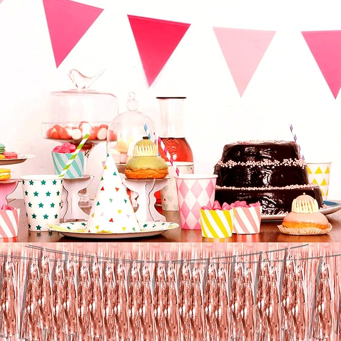 3P Rose Gold Foil Fringe Metallic Tassel Streamers Banner Tassel Garland for Parade Floats, Bachelorette, Wedding, Birthday, Halloween, Christmas, Bridal/Baby Shower Party Decorations