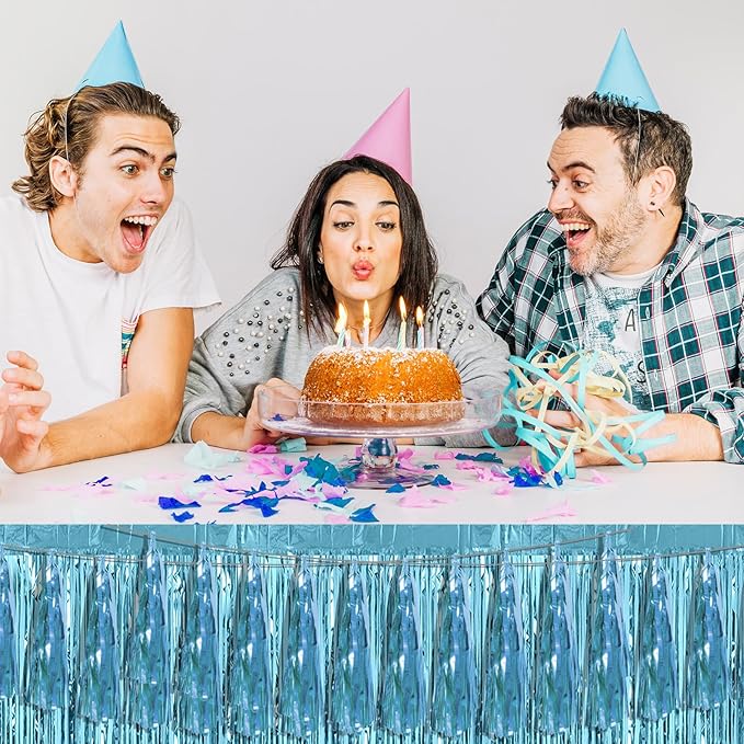 3P Light Blue Foil Fringe Metallic Tassel Streamers Banner Tassel Garland for Parade Floats, Bachelorette, Wedding, Birthday, Halloween, Christmas, Bridal/Baby Shower Party Decorations