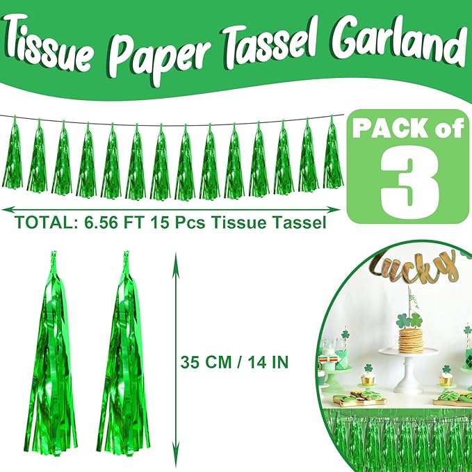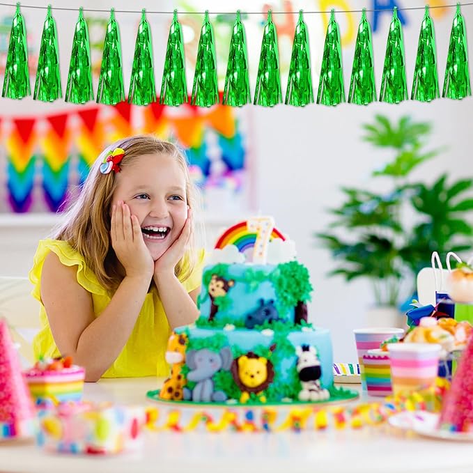- 【Green Party Supplies Set】: The total length of the green birthday tassels banner is 29.5 feet 45tassels, divided into 3 strips, each 9.8 feet long. Each banner contains 15 tassels, and each tassel measures 14 inches, for birthday decorations many occasions, and so on