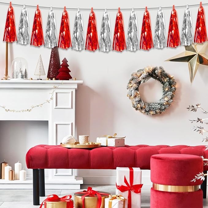 - 【Perfect Party Decoration】The Red Silver tinsel garlands are designed in a metallic Fringe, bright, and beautiful, at the same time, they shine in the sun, and these gorgeous tassel garlands create a wonderful backdrop or centerpiece for your party space. and bring you, your family, and your friend's good Visual effects. your party many emotional and touching moments where a lot of pictures will be taken and everybody will have a wonderful time together.