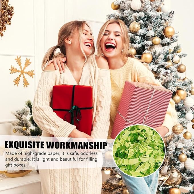 1 LB Light Green Crinkle Cut Paper Shred Filler Great for Gift Wrapping, Basket Filling, Birthday, Wedding, Halloween, Thanksgiving, Christmas Day, New Year Party Decorations Filling Supplies A