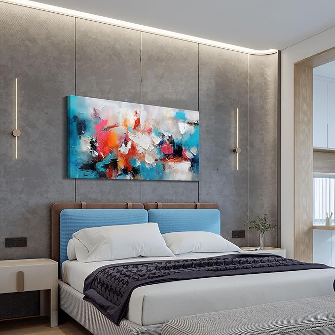 Large bstract Wall Art Canvas Wall Art for Living Room Hand-Painted Art in Blue and Pink Office Wall Decor Paintings for Wall Decorations Modern Wall Decor for Bedrooms and dining Room 29×58in