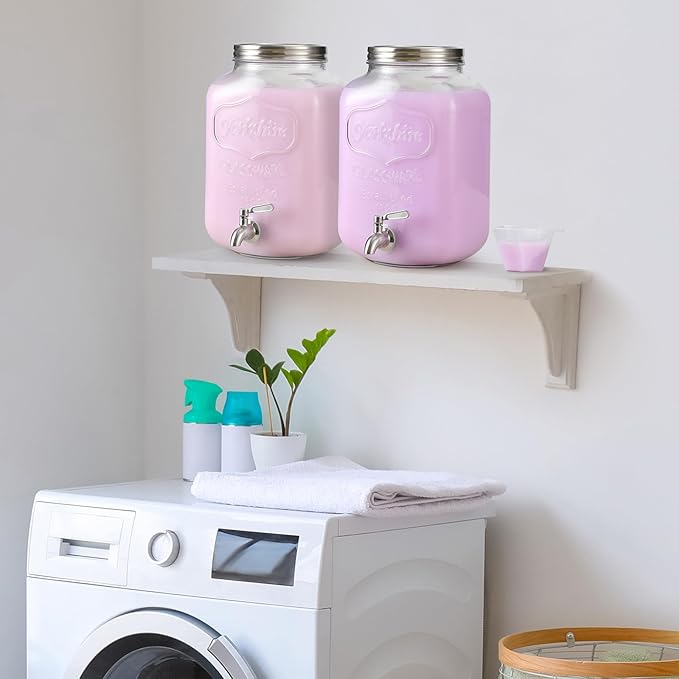 1 Gallon Glass Beverage Dispenser, 18/8 Stainless Steel Spigot and Lid, Glass Drink Dispensers for Parties, Mason Jar Drink Dispensers with Lids