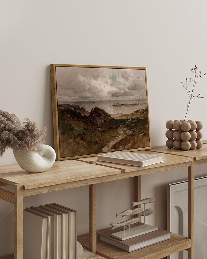 InSimSea Framed Canvas Wall Art Vintage Decor, Seaside Path Wilderness Landscape Paintings Artwork, Large Prints, Retro Wall Decorations for Living Room Bedroom Bathroom, 16"x24"