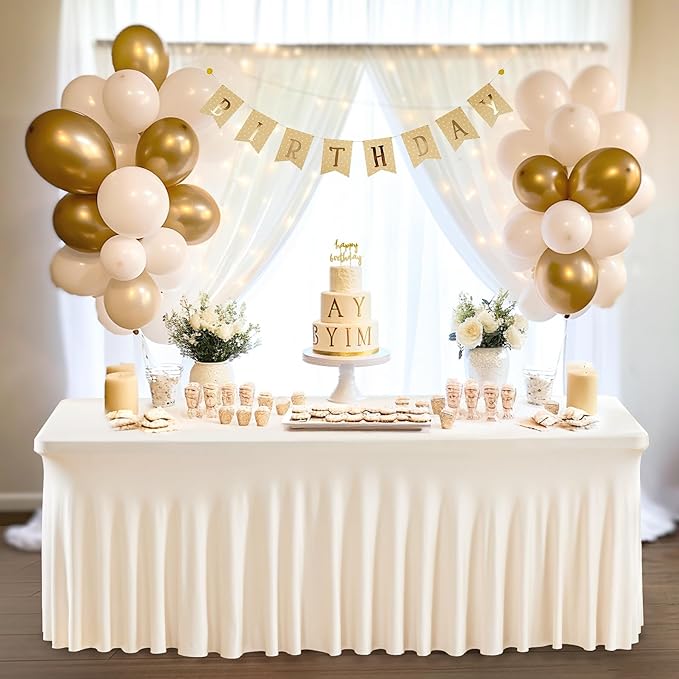 1 Pack Ivory Table Clothes for 8 Foot Rectangle Tables, One-Piece Wrinkle Resistant Stretch Spandex Table Covers with Skirt for Event Banquet Wedding Birthday Party