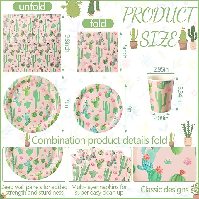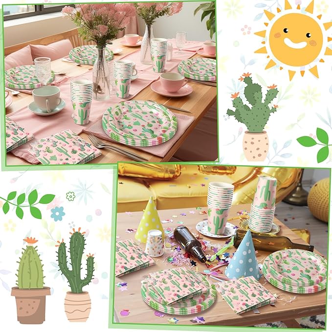 Hsei 250 Pcs Cactus Plates and Napkins Party Decorations Disposable Tableware Sets Summer Birthday Party Supplies Serves 50 Guests Dinnerware Bridal Shower Holiday Party Favors