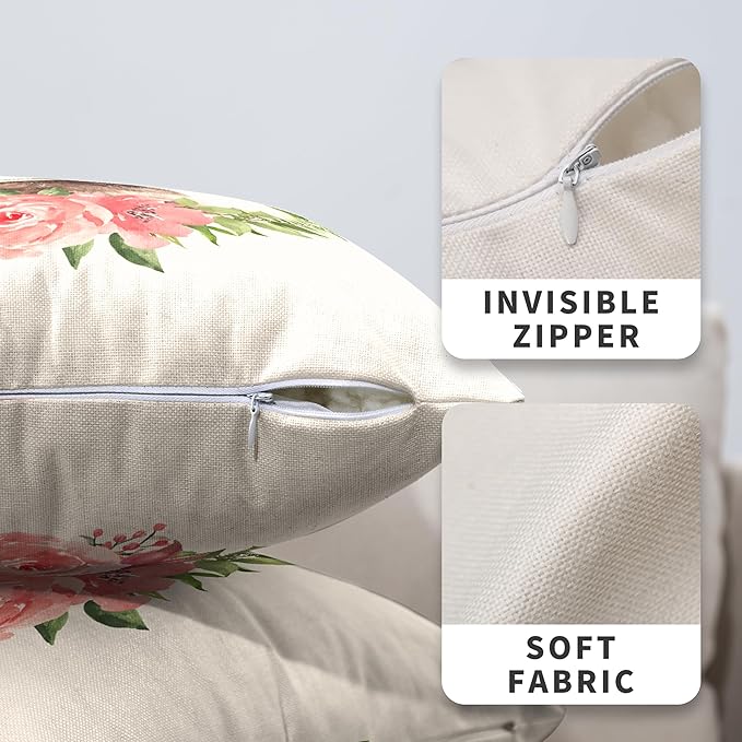 - 🐰【PACKAGE INCLUDES】 2 pack of Spring Easter throw pillow covers 20x20 with different designs, features a Easter theme, adding a lot of fun to Easter. The rabbit and pink floral decorative pillow cover with invisible zippers. Both sides with same bunny wreath and cross printings as showed in picture. And NO pillow stuffing.