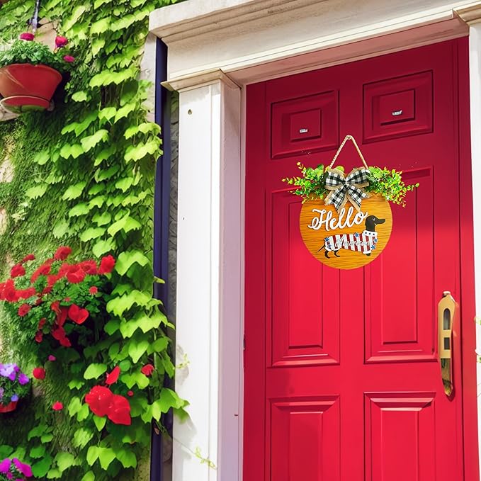 - 🐕🦺【The beautiful design of Spring wreaths for front door】Made from high-quality wood, the interchangeable welcome front door Dachshund sign ensures sturdiness and durability. Perfect for home decor enthusiasts who appreciate attention to detail and aesthetics, this modern farmhouse-style decor enhances any front door or favorite spot for your furry friend, adding a charming farmhouse touch.