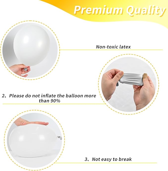 - Premium-Quality Balloons: Crafted from natural, high-grade latex, each balloon undergoes rigorous manual testing to ensure exceptional elasticity and safety. Suitable for both adults and children, these balloons are an ideal party decoration kit, suitable for inflation with air or helium, and recommended for use with balloon pumps. They are non-toxic, guaranteeing a secure and enjoyable celebration.