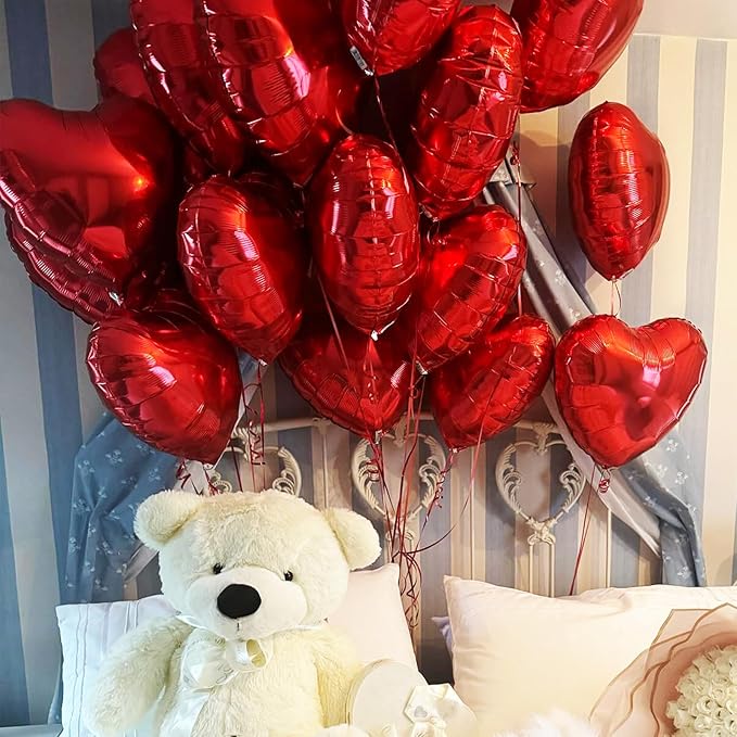 - Red Heart Balloons: 10pcs 18 inch red heart foil balloons.
