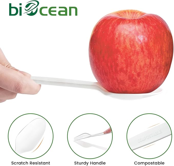 - 【Whoelsale Bio-plastic Forks】 - Package comes from 200pcs Compostable Spoons Bulk, our heavyweight PLA no plastic utensils can be used to enjoy many warm and cold food. Our no plastic forks and spoons each piece has compostable printed on it which is a nice touch