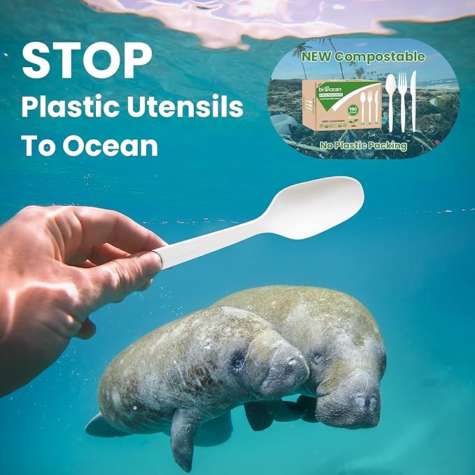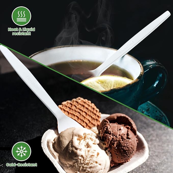 - 【Certified Non-plastic Spoons】 - Our compostable utensils made from polylactic acid (PLA). 100% no plastic and no toxic fumes! This eco-friendly disposable silverware/zero plastic soup spoons, is BPI-certified for meeting quality standards.Totally safe for food.