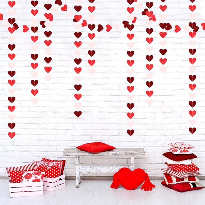 Party Decorations Pink-Red Heart-Garland - 52ft Burgundy Proposal Special Night Galentines Hanging Streamers Banner,Girl Romantic Wedding Anniversary Baby Bridal Shower Engagement Decor