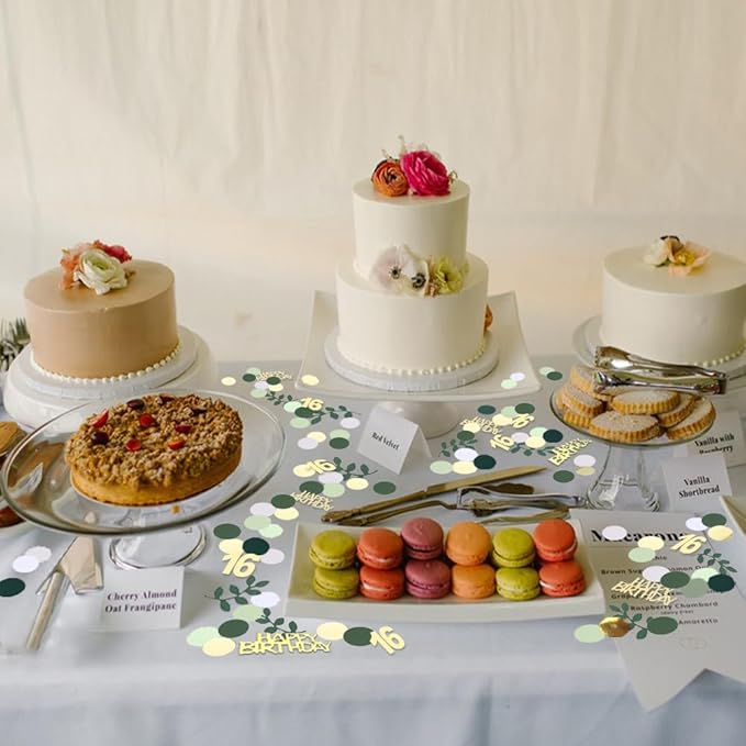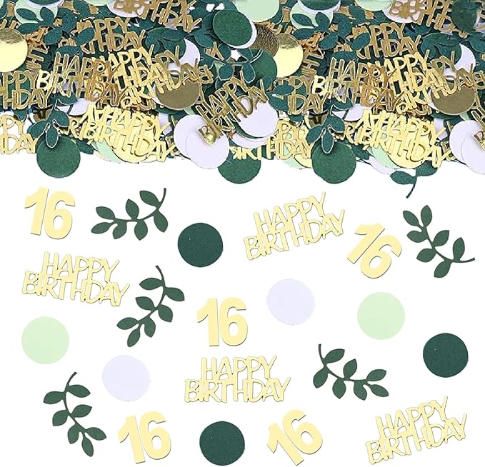 - 【YOU WILL GET】You will receive 16th Sage Green Gold Happy Birthday Confetti 230 pieces in 4 different colors (sage green, gold, white, dark green) green eucalyptus leaves and gold happy birthday, which can meet your various decoration needs.