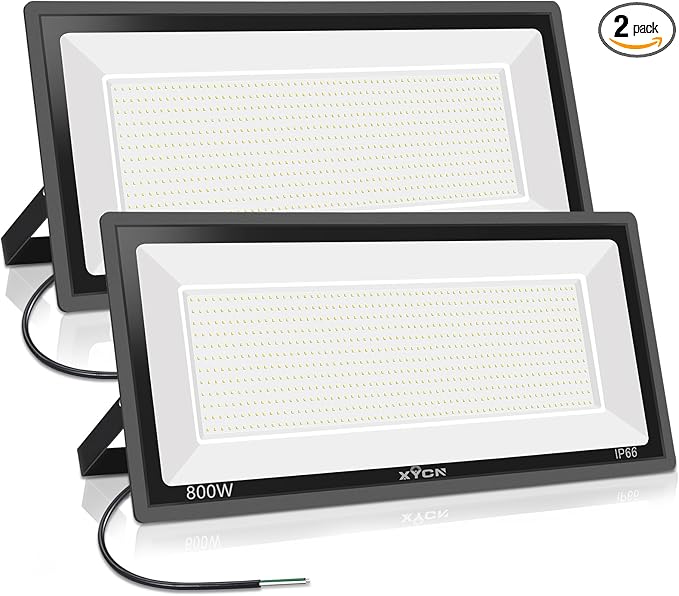 - SUPER BRIGHT & ENERGY SAVING:Equipped with bright LEDs,The 800 watt LED floodlights can produce up to 89500lm super brightness; can replace 3050W traditional halogen bulbs,Save more than 90% electricity, It’s much lower consumption comparing with traditional halogen outdoor lamps, no longer worry about high electricity costs. And it can work at any voltage between 100-277V