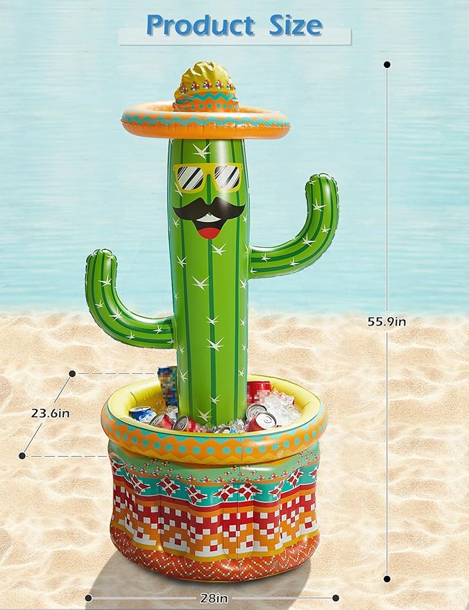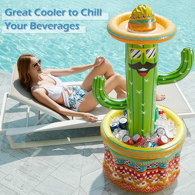 Jasonwell Inflatable Pool Party Cooler - Fiesta Cactus Ice Bucket Luau Hawaiian Tropical Beach Themed Birthday Easter Party Decorations Favors Outdoor Decor Pool Games Set for Kids Adult