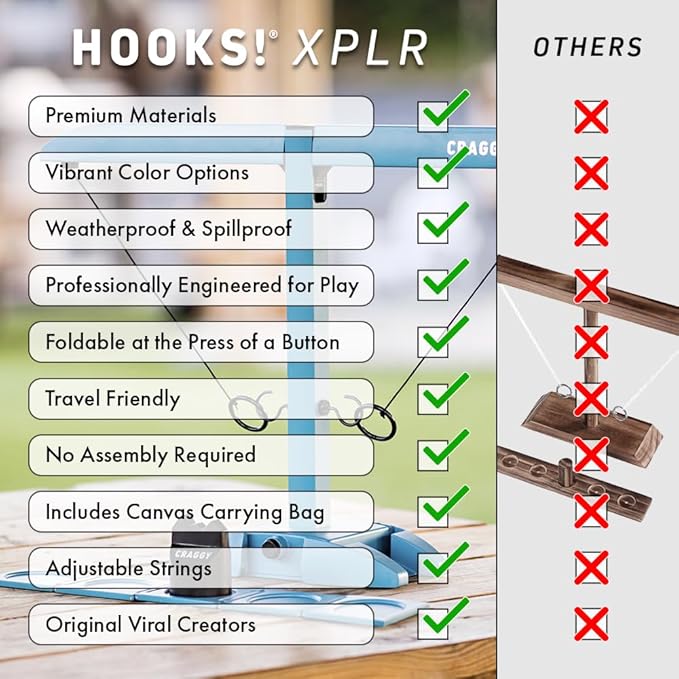 Craggy Games Ring Toss & Shot Ladder Game Hooks XPLR - Portable Aluminum Hook and Ring for Indoor/Outdoor Games - Family Game Night, Party Games, Travel, Multiplayer for Ages 12+
