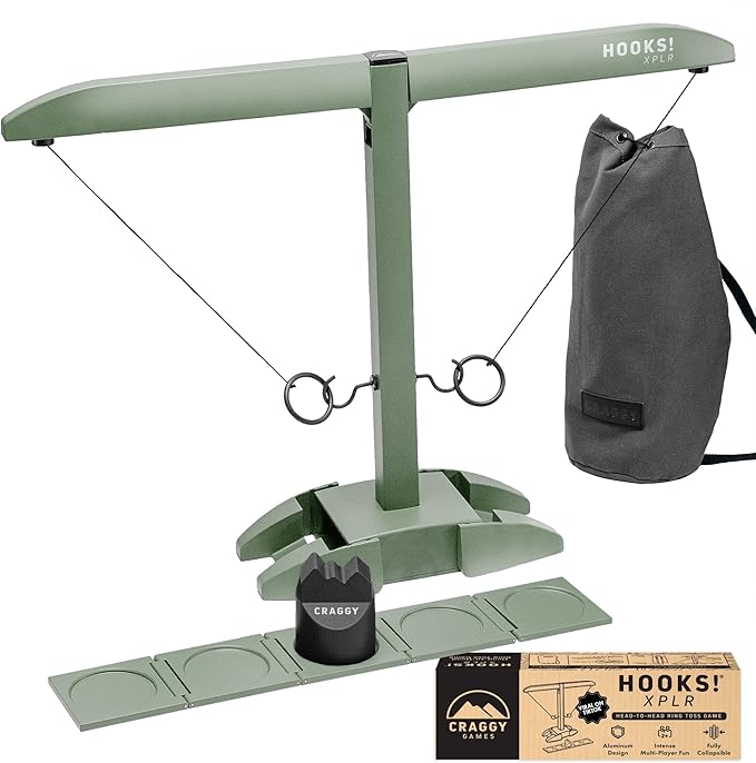 Craggy Games Ring Toss & Shot Ladder Game Hooks XPLR - Portable Aluminum Hook and Ring for Indoor/Outdoor Games - Family Game Night, Party Games, Travel, Multiplayer for Ages 12+