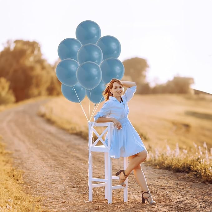 - π High Quality Balloon Decoration - Our slate blue party balloons are made from premium latex materials, non-toxic, ensuring exceptional quality and durability, not easy to burst. They are much more durable than regular matte muted blue helium balloons and after expansion, the teal blue balloons can stay in good shape for a long time, so you don't have to worry about them bursting before the party is over.