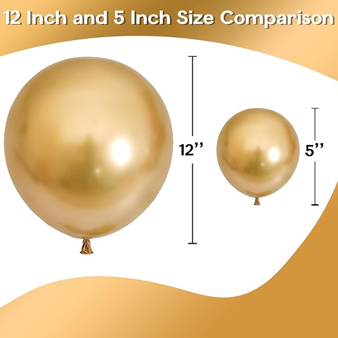 - π Round Balloons Set Includes - Each mini balloon kit contains 60pcs gold 5 inch balloons for balloon arch kit balloon garland decorations and 1pc gold balloon ribbon (total of 33 feet). The right quantity of party balloons and the most suitable color allow you to create a visually striking and captivating atmosphere that will leave your guests in awe.