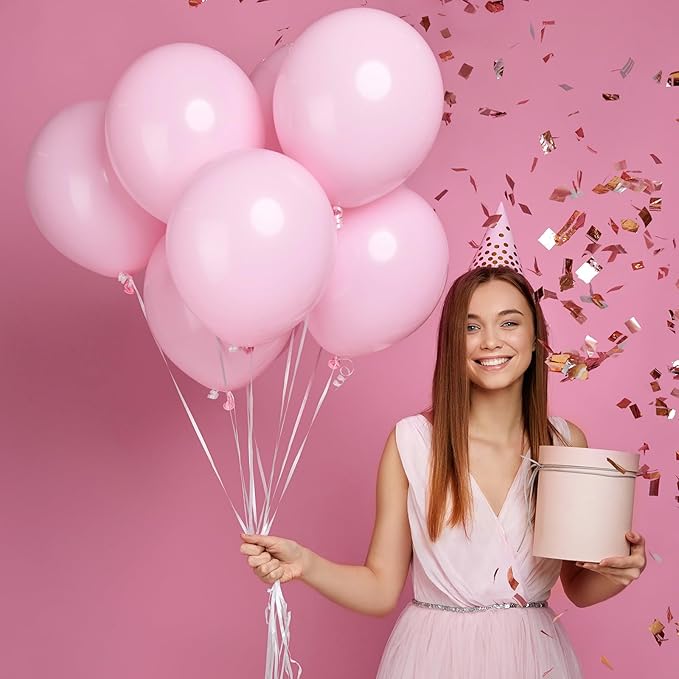 - β¨ What To Fill With - Our pink birthday balloons for arch garland, pastel pink party decorations are high quality natural latex with good elasticity, supported with air or helium. The globos rosados 12in pink balloon set also includes a ribbon, you can easily make a balloon bouquet, let your little ones run happily with it or let your family or friends take beautiful photos with pastel blue and pink balloons arch kit baby boy girl.