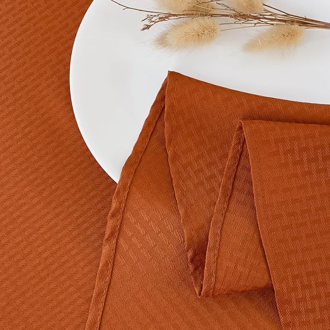 maxmill Round Tablecloth Weaved Pattern Spill-Proof Wrinkle Free Soft Jacquard Table Cloth for Circular Table Cover, for Dining Room Fall Harvest Thanksgiving Parties Holiday Dinner, 90 Inch, Rust