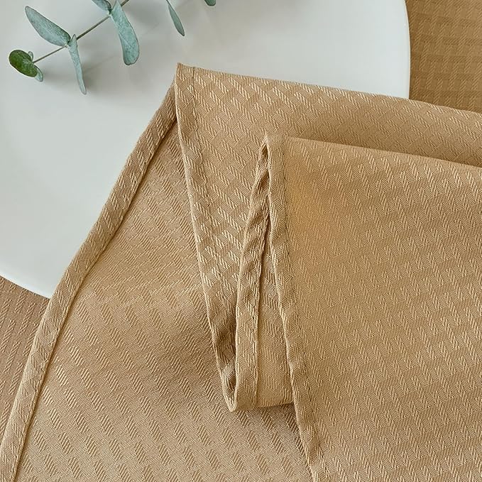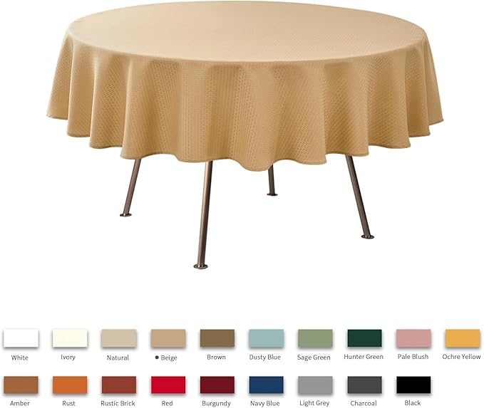 maxmill Round Weaved Texture Design Tablecloth Spill-Proof Wrinkle Free Soft Washable Table Cloth for Circular Table Cover, for Dining Room Buffet Banquet Parties Holiday Dinner, 70 Inch Beige