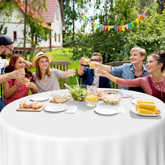 - Quality Material: these disposable round tablecloths are made of quality PE plastic, thick, sturdy, smooth surface, waterproof, not easy to tear, nontoxic and odorless, ensure you can use it with confidence; Plastic material can be recycled