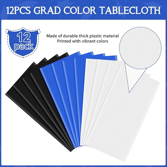 - Multiple uses: our blue black white plastic tablecloths can not only be applied in parties, but also can play a very good decoration effect on your party; Suitable for birthdays, weddings, graduation parties, picnics, and a variety of other holiday events; Suitable for indoor and outdoor parties
