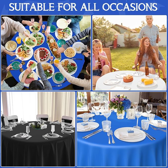 - Quality Material: these disposable round tablecloths are made of quality PE plastic, thick, sturdy, smooth surface, waterproof, not easy to tear, nontoxic and odorless, ensure you can use it with confidence; Plastic material can be recycled