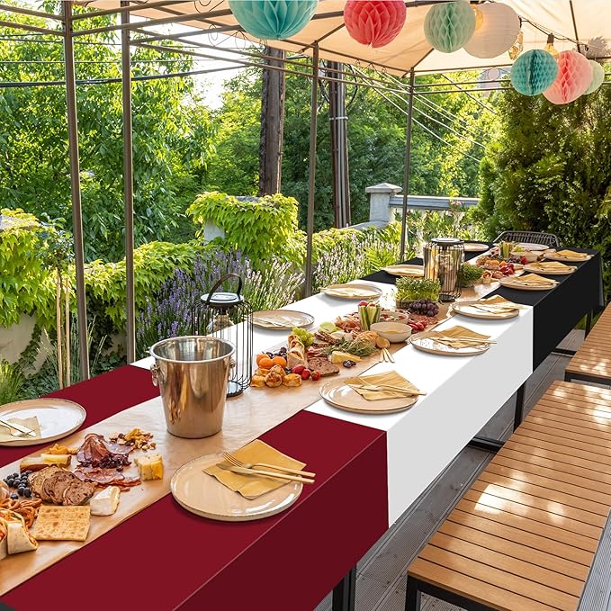 - Multiple uses: our maroon black white plastic tablecloths can not only be applied in parties, but also can play a very good decoration effect on your party; Suitable for birthdays, weddings, graduation parties, picnics, and a variety of other holiday events; Suitable for indoor and outdoor parties