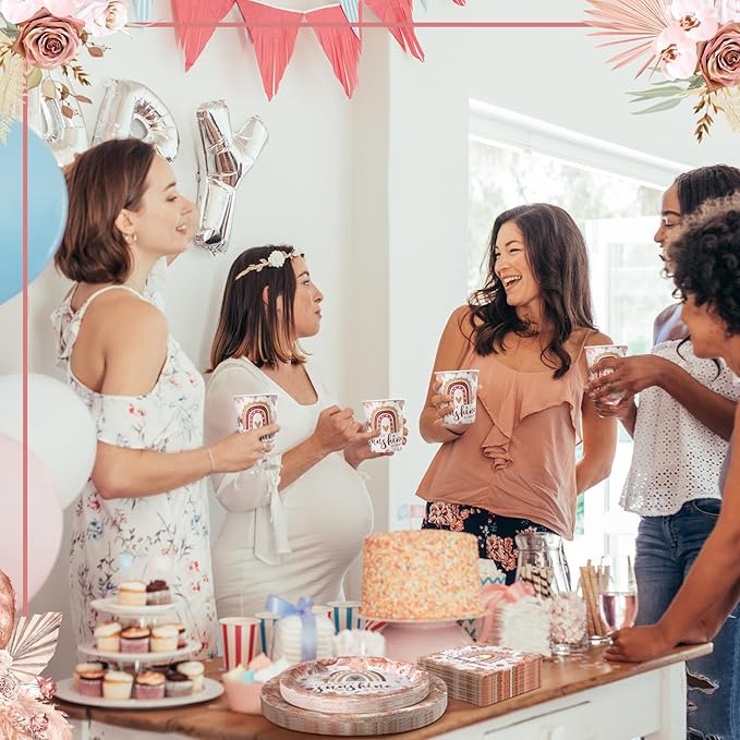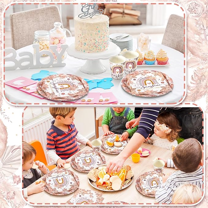 - Exquisite Design: our baby shower party cutlery set features Boho patterns as the background, printed with various rainbow and flower patterns, elegant and beautiful; It can be well matched with certain occasions or table decorations, adding charm to your gathering; This natural and elegant design is suitable for creating a celebratory atmosphere and perfectly coordinated theme for birthday themed parties